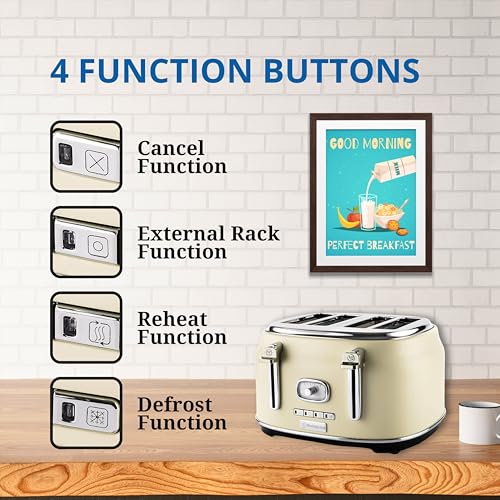 - ELEGANT 2 SLICE RETRO TOASTER with 5 different function settings to meet all of your needs