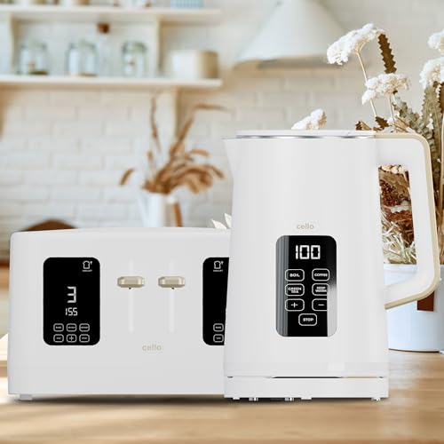 White 1600W 4 Slice Toaster, 1.7L 3000W Digital Kettle | Toaster with Detachable Crumb Tray, Digital Control Panel with Countdown Timer, BPA-Free Auto Shut-off Electric Temperature Control Kettle