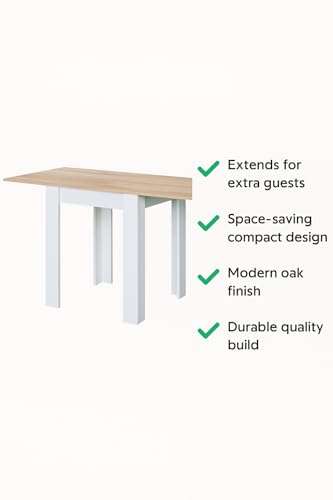 White & Light Oak Effect Extending Dining Table – Modern Extendable Kitchen & Living Room Table for Small Spaces (6-8 Seater)