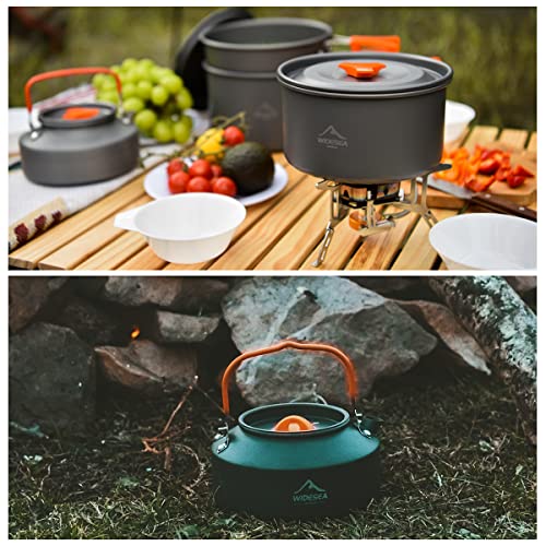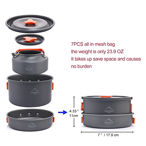 WIDESEA Camping cookware set for 2-3 people Non-Stick frying pan soup pot and kettle Set Mess Kit Hiking/trekking/Picnic outdoor (lightgrey)