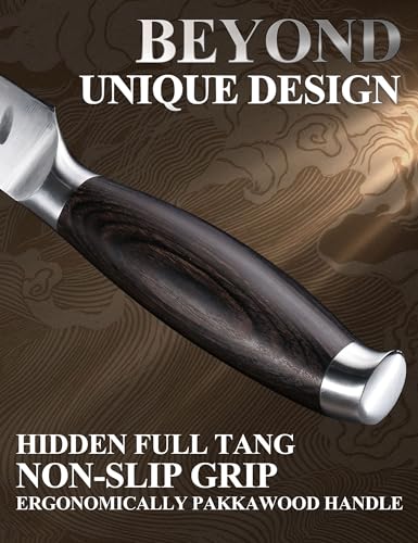 • 【Razor Sharp Blade】The blade edge is precisely hand-polished to 15° on one side, sharp and smooth, hollow edge, cutting steak effortless and non-stick, lock the original flavors and nutrition of food. Expertly crafted with a tapered stainless steel edge that cuts with ease and efficiency.