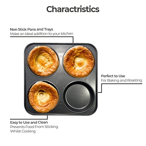 WINSOME Yorkshire Pudding Tray 4 Cup Muffins Bakeware Tins & Trays Premium Nonstick Cupcake Tray for Oven Baking Roasting Tin (Pack of 1)
