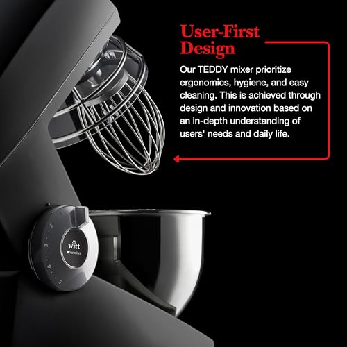 Witt Teddy Varimixer – Large 5-Litre Food Mixer For Baking With Bowl Including Whisk, Beater, Hook, Bowl Lid, Splash Guard, Filling Chute. Crafted For Precision And Durability (Black)