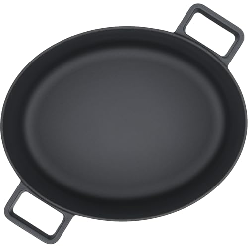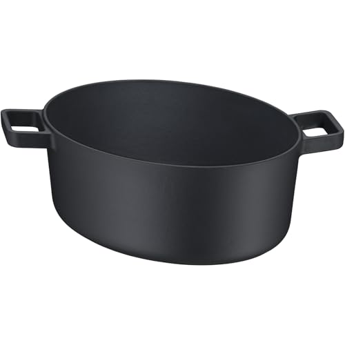 - Contents: 1x cast iron roasting pan (39.5 cm length with handles, 28 cm width x 17.5 cm height with lid, volume 8.6 litres), 1x cast iron lid. Item number: 555334290