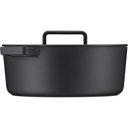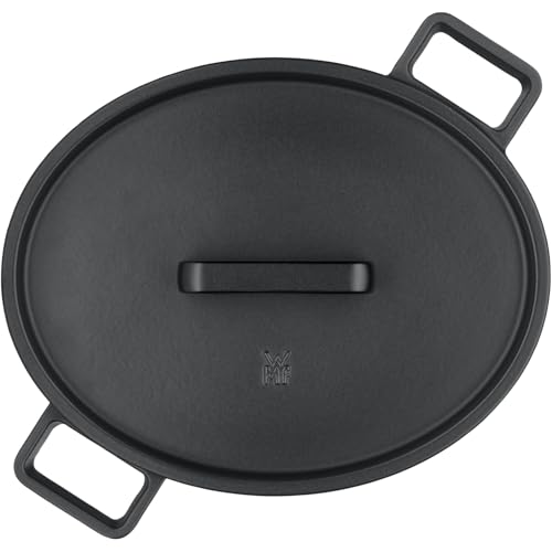 WMF Flavour Oval Casserole Dish 34 x 28 cm, Cast Iron Induction, Cast Iron Cookware, Enamelled, Cast Iron Pot, Cast Iron Lid, Casserole Pot, Lid with Condensation Nubs, Modern Elegance, Black