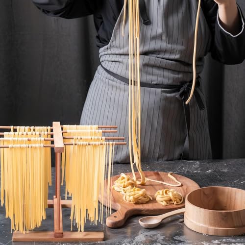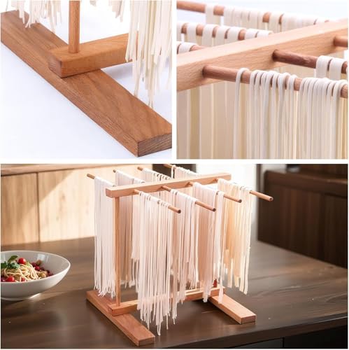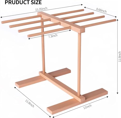 - Easy To Organize: When in use, the wooden sticks are assembled together, with a size of 15.5×11.8×11.9in; When not in use, pull out the wooden stick and easily store the pasta rack in the drawer.