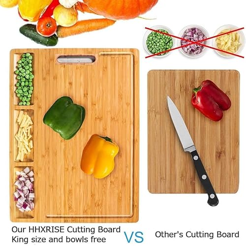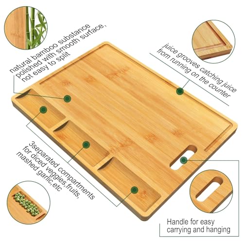 Wooden Chopping Boards for Kitchen, Multi-Functional Bamboo Chopping Board, Large Chopping Board Wood, Charcuterie Boards, Wooden Cutting Board with 3 Built-in Compartments and Juice Grooves