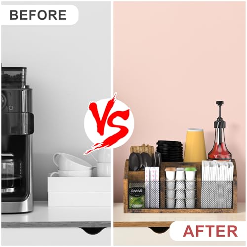 - MULTI-SCENE FUNCTIONALITY Beyond a coffee station organiser: Use as a tea caddy, kitchen utensil holder, spice rack, bar accessory tray, or office supply organiser. Seamlessly transitions from farmhouse kitchens to modern offices, adding rustic charm to coffee corners, breakfast bars, and break rooms.