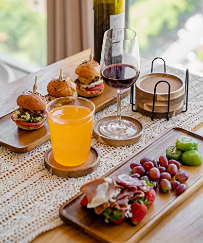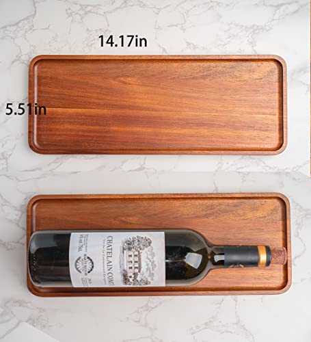 Wooden Serving Platter Tray Set of 3 14.17×5.5in, WLWNWFT Acacia Wood Serving Tray Boards Dessert Platter for Housewarming Serving Food Entertaining Party Kitchen Counter