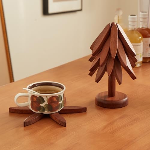 - High-Quality Wooden Craftsmanship: Crafted from premium wood, these trivets offer sturdy and reliable support for all your hot dishes. Their clever design allows for space-efficient storage, resembling a decorative Christmas tree. They make an ideal gift for holidays and birthdays, combining practicality with thoughtful elegance.