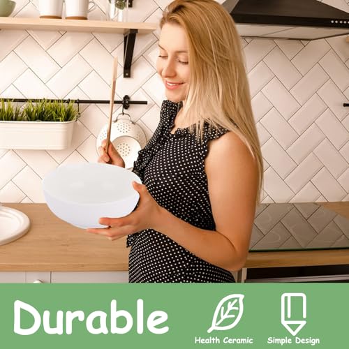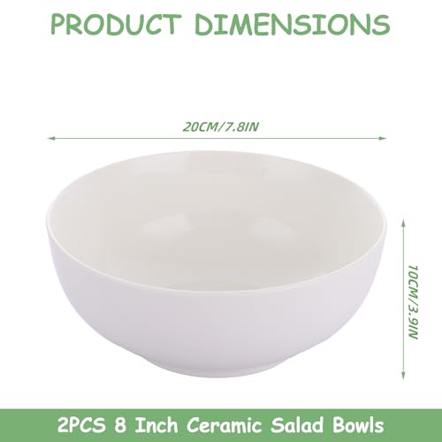 WOPPLXY 2 PCS Large Salad Bowl, 1400ML Porcelain Big White Serving Bowl Cereal Bowl, 8 Inch Ceramic Solid Pho Soup Bowl Serving Dishes Breakfast Bowl