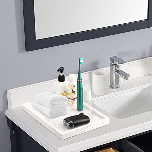 WORHE Italy Marble Vanity Tray for Jewelry, Perfume, Makeup, Candle,Towel Natural Modern Decorative Trays for Bathroom Bedroom Dresser Rectangle Kitchen Storage Organizer for Home Decor White FX032