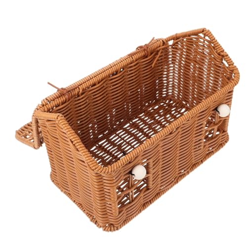 Woven Basket Handheld Storage Picnic Rattan Lid Wicker Handle Brown Flower Garden