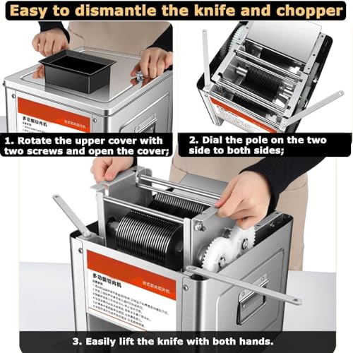• Easy To Disassemble&Clean Commercial food slicer With its removable blade, cleaning and maintaining the meat cutter is an effortless process that can be done with ease using clean water. After cleaning, applying a small amount of cooking oil to the blade helps prevent rusting and maintains its sharpness for longer periods of time. The blade's sharpness is essential to the cutter's optimal performance, so keeping it clean will ensure perfect cuts every time.