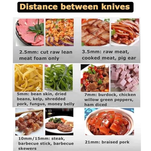• Wide Application: In addition to meat slices, you can also get shredded meat and minced meat with our meat slicer cutter (once into slices, twice into strips, three times into minced). Widely used in the kitchen, restaurant, supermarket, meat market. However, it's not suitable for cutting meat with bones,hard vegetables such as potatoes, lotus root, and carrots.