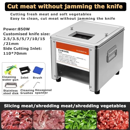 WYWY Electric Meat Cutter Cutting Machine Slicer Cube Shredded Meat 850W Stainless Steel Chicken Fish Beef Chicken Commercial Meat Vegetable Slicer(3.5mm)