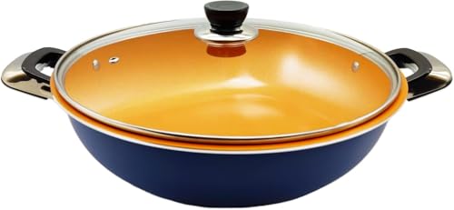 X11 Homeware Non Stick Wok with Lid – 30cm Large Ceramic Coating Wok Pan – Tempered Glass Lid, Heat Resistant Handles – Non Stick Deep Frying Pan & Stir Fry Pan – Supports All Hobs