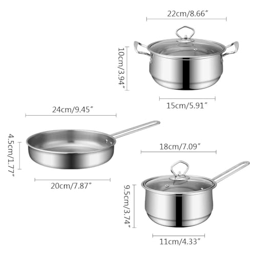 - 3 pieces/set of stainless steel cookware combination set, including frying pan, soup pot, milk pot, to meet your different needs, provide perfect decoration for your kitchen.