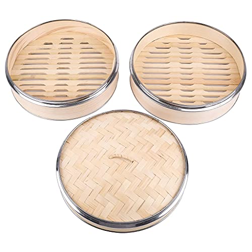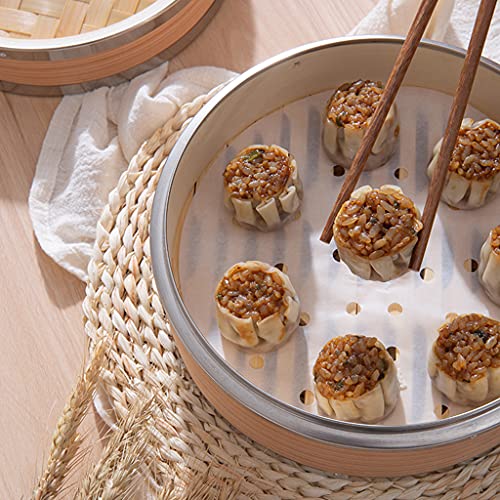xbiez Bamboo Steamer Basket Single Tier/2 Tier with Steamer Liners Perfect for Dumplings Dim Sum Bao Bun Vegetables Rice Meat