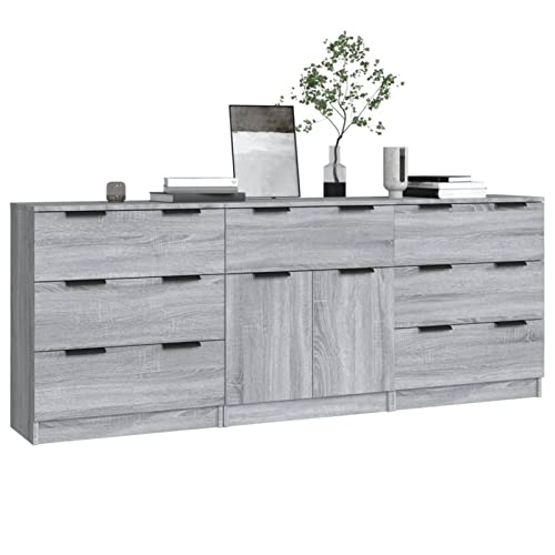 XIAOGUANG Kitchen Floor Shelf,Table Top Storage,Kitchen Cabinet,3 Piece Sideboards Grey Sonoma Engineered Wood