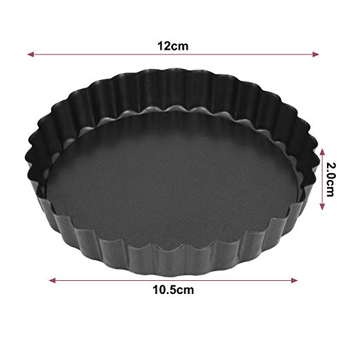 Xinzistar 4 Pack 12cm Tart Tins with Removable Loose Bottom, Non-Stick Mini Cake Tins Quiche Dishes Tart Pans, Round Egg Mould for Baking Cheesecakes (Black)