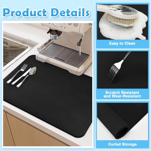 - 【Draining Mat for Kitchen Counter】The black kitchen drain mat protects the cleanliness of countertops. It can be used on the kitchen sink, coffee table, tea room or as a cup and plate mat. This drain mat can be used on the bathroom sink, sink, living room or bedroom. . The black drain mat goes well with modern decoration styles