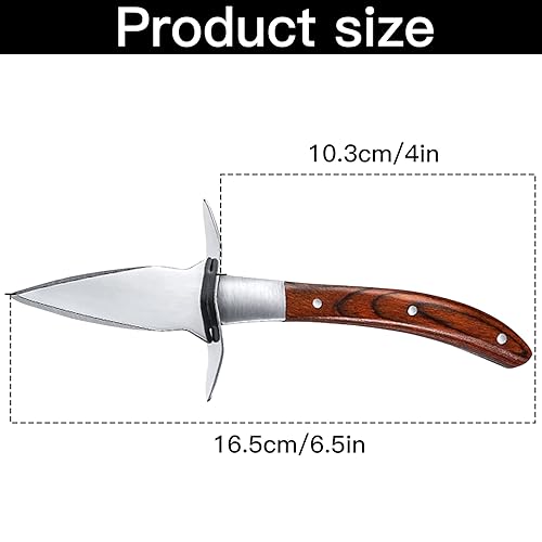 • 🗡Anti-slip Handle: The non-slip wooden handle can offer you a comfortable and tight grip that allows you to open oysters easily.