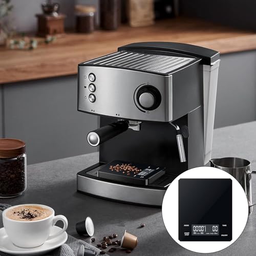 - Elegant Design for Every Setting: Crafted with a sleek black tempered glass surface, this digital scale not only enhances your coffee brewing experience but also complements any kitchen or coffee bar aesthetic. The backlit LED display ensures easy reading, even in low light