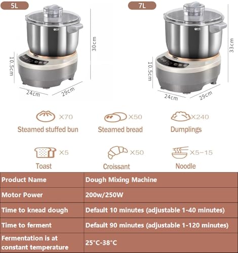 • ★【LARGE CAPACITY】This dough kneading machine imitates manual kneading oper-ations, and the kneaded dough is smooth and strong. 5L /7Lcapacity, one-time kneading, completely freeing your hands, saving you time, for bread, biscuits, pizza, buns, or dumplings in one batch