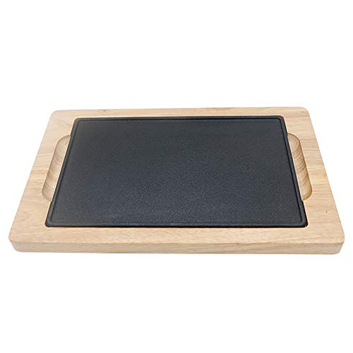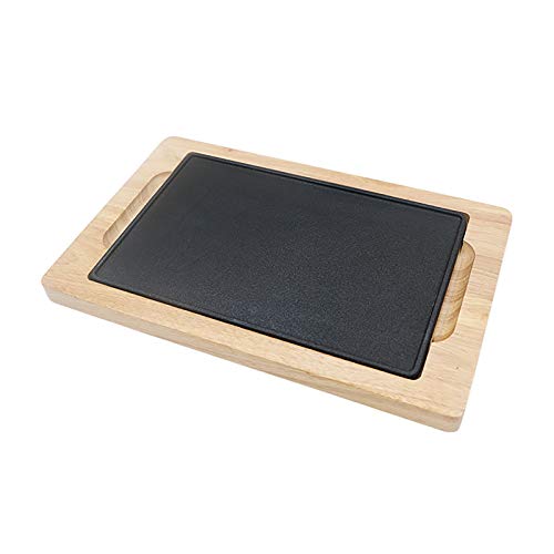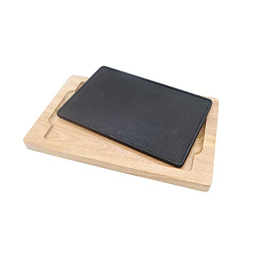 XWBLDBDFC Teppanyaki Plate,Large Cast Iron Steak Plate,Griddle with Wooden Base, Steak Pan Grill Server Plate, Household Use or Restaurant Supply-A||33 * 23cm