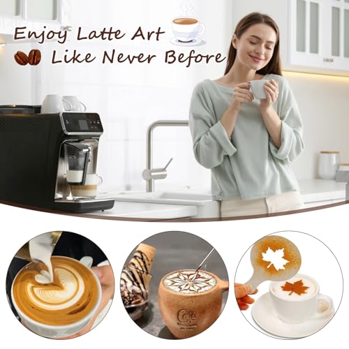 - 【Espresso Machine Accessories Set】- The 350ml stainless steel milk frothing jug has a graduated line on the inside of the jug to measure the exact amount required. Effortlessly froth or steam milk in a milk glass, and dishwasher safe. Silicone tamper mat protect tabletop and portafilter from damage, preventing the portafilter from slipping off when punched. Espresso puck screen that distributes water evenly over the grounds, enhancing flavour extraction for perfectly brewed espresso. This is a must-have coffee accessory for any serious coffee lover! Professional latte art pens and decorative stencils can draw beautiful coffee patterns.