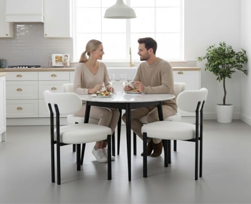 - 【Comfort Experience】The curved backrest of the white and black dining chairs contours to your spine, while the thick, high-resilience cushion provides even support for lasting comfort.