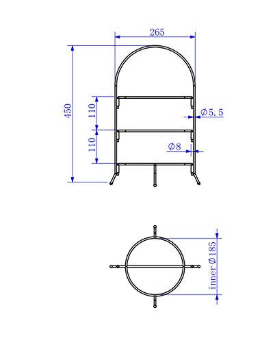 - 👉 Product dimensions are: 450(h) x 265(w) x 185(dia.) with 110mm gap height between the layers. Solid construction with non-slip rubber feet to prevent sliding on any surface. This stands support plates size up to 230mm, easy to clean. Plates are not included in this product package.