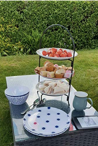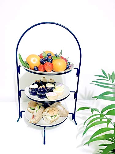 - 👉 This popular packable 3-tier large size afternoon tea and cake stand comes in 4 assembling pieces in a flat package. This easy-to-store stand is made from metal, with its matt black finish, serves your guests in style for any occassion.