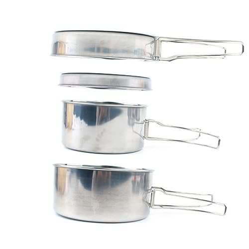 YARNOW 4pcs Stainless Steel Pot Set Camping Cookware Pan Combination Cooking Set for Outdoor Hiking Person Use