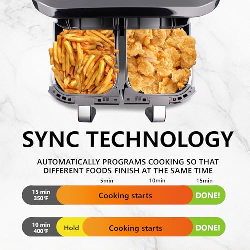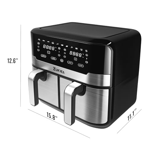 YEUKYEA 9.0L Large Capacity Dual Air Fryer, 2 Non – stick Drawer Air Fryer Ovens with 11 in 1 Cooking Presets, Sync Cooking and Finish, No Oil Required, Crispy and Aromatic, 2400W Power, Dishwasher