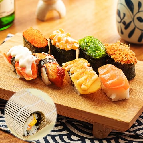• [DURABLE]:This finely polished bamboo sushi mat has a sturdy structure that makes it easy to store and clean! It is not easy to break even after a long time of use, and can provide long-lasting support for your sushi making journey