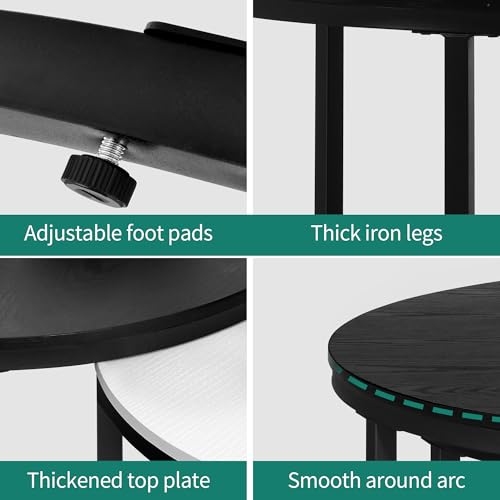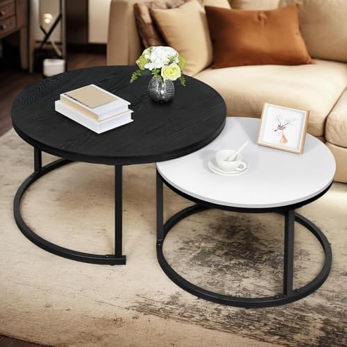YITAHOME Modern Nesting Coffee Table Set of 2 for Living Room, Black Round Wood Coffee Tables Stacking Accent Cocktail Tables End Side Table with Sturdy Metal Frame, Easy Assembly Black and White