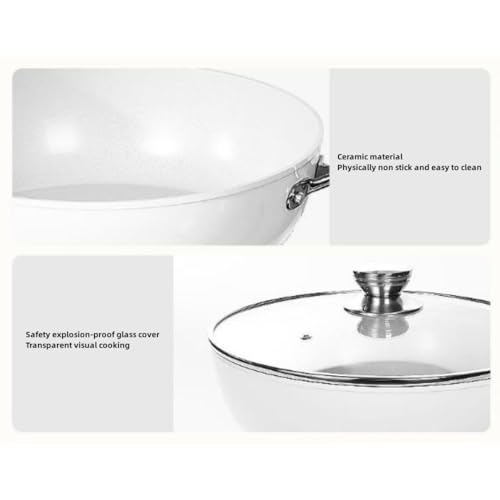 • Ceramic material, physically non stick and easy to clean, safe explosionproof glass cover, transparent and visual cooking, stainless steel handle, anti scald and heat insulation, comfortable grip, increased stainless steel bottom, fast and even heat conduction
