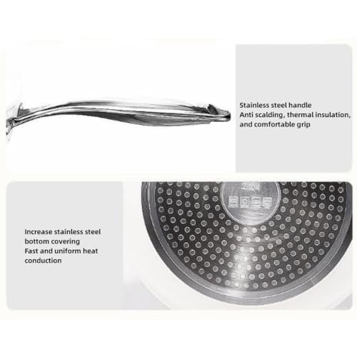 • Cleaning is fast and convenient, saving time and effort. Clean the leftover food and oil stains in the pot with just one wipe. Say goodbye to laboring to clean the pot, and take good care of your hands with all your heart. The composite pot bottom has fast thermal conductivity, saves time for frying, and is not suitable for multiple stoves such as induction cookers and gas stoves