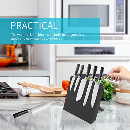 YKUKIZEE Magnetic Knife Block, Powerful Wooden Magnetic Knife Organiser Stand and Storage Rack, Black Wood Magnetic Knife Holder for Knives