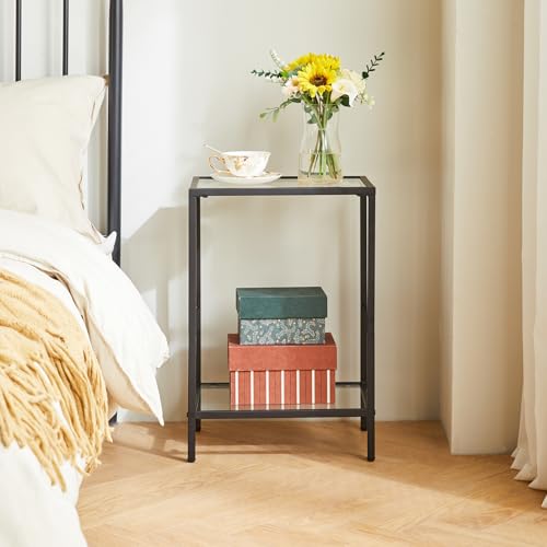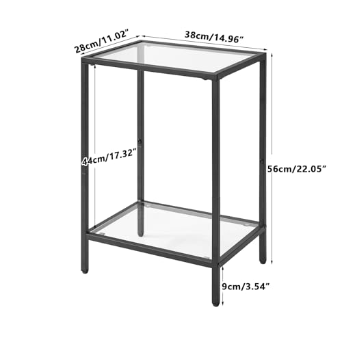 YMYNY Side Table, 2 Tier Sofa End Table, Bedside Tables with Tempered Glass, Coffee Table, Laptop Table for Living Room, Bedroom, Home Office, Industrial Style 38×28×56CM Black HGD002B
