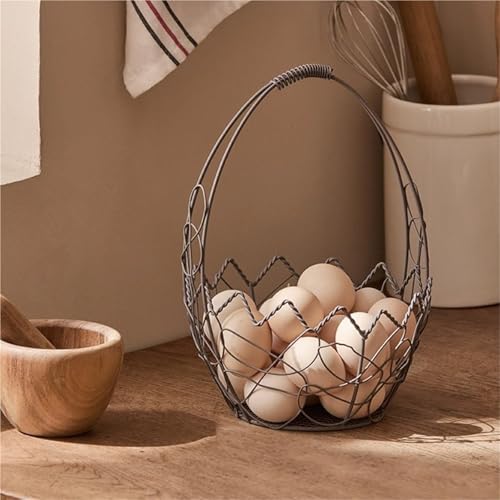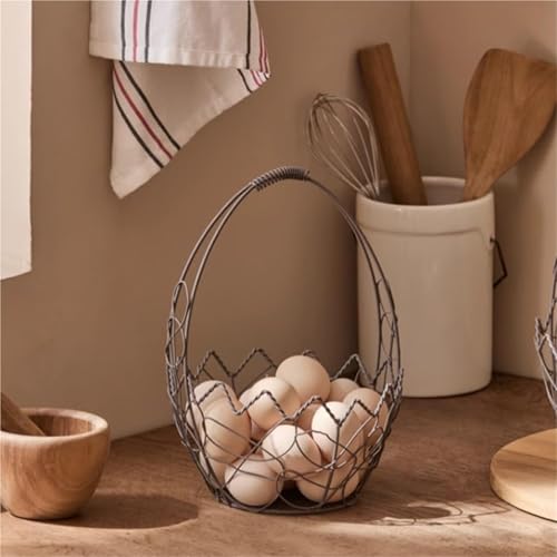 - ➤【Egg Basket with Handle】Wire egg basket for collecting fresh eggs for countertop, the wire egg basket has a practical handle that allows you to carry the eggs easily