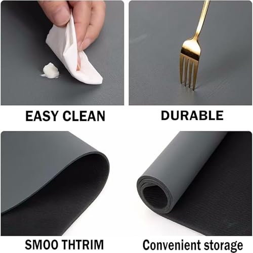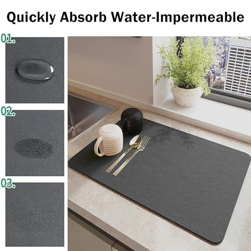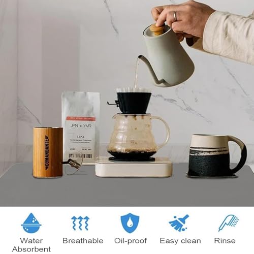 - Multifunctional: The coffee machine mat is compatible with coffee machines of different sizes. You can also cut them to any size that meets your needs. It is not only a drying mat for coffee machines, but also can be used as a drying mat for kitchen, bar and bathroom, as a non-slip drying mat for dishes, as a mat for pet food, as a washing up and cup draining mat, etc.