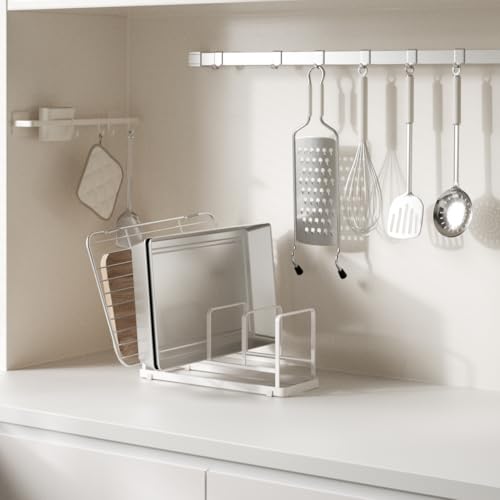 - STYLISH ORGANIZATION: 5 vertical rungs create 4 storage spaces for your kitchen dishes. Stylish design and color fit mostly kitchen decoration and cabinet.