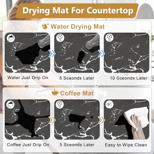 - Easy to Clean The dishwasher mat for coffee machines does not require frequent cleaning as it hides stains well. Drip mat dishes. Simply clean by hand or machine to remove stains, then dry and use again. To improve the absorbency of this coffee machine mat, we have increased its thickness so that it can absorb liquids quickly and keep your pantry and kitchen countertops clean and tidy