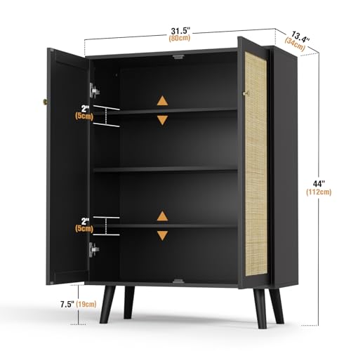 - 【Ample Storage Space】– Our kitchen sideboard offers more space than most cabinets. The 2 storage areas with doors include adjustable/removable shelves, so you can adjust the height of the shelves as required. Use our black sideboard to meet the need for storing different sizes of plates, pots and pans, infrequently used kitchen utensils, and more.