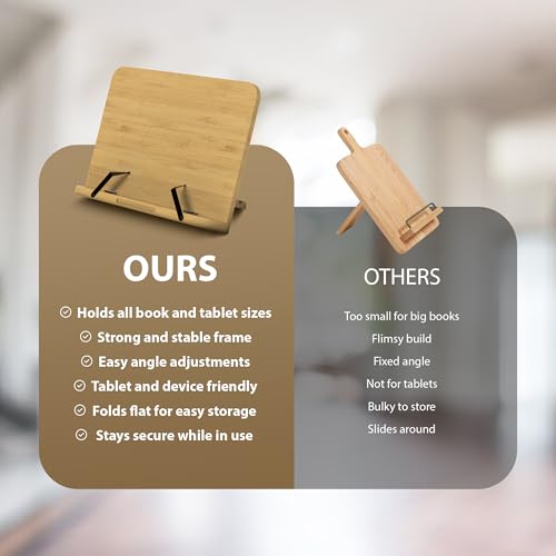 - PERFECT COOKBOOK STAND FOR THE KITCHEN – Keep your recipe book open at the perfect angle while you cook or bake, making it easy to follow instructions without flipping pages or touching the book with messy hands.