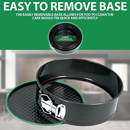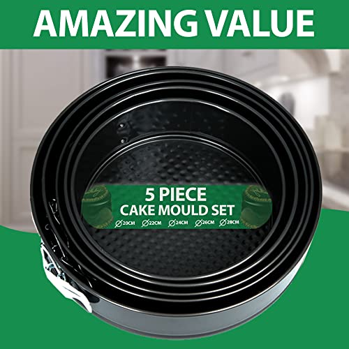 ZENO Cake Tin Set 5 PCS | Springform with Removable Bottoms | Metal Handles | Non-Stick Coating | Loose Base Baking Pan Tray | Perfect for Cakes and Cheesecake – Sizes 22/24/26/28/30 CM