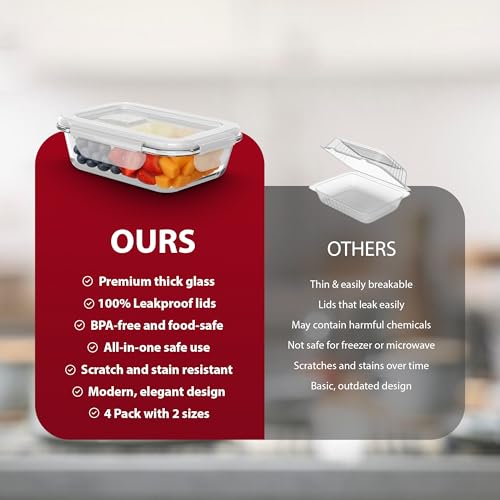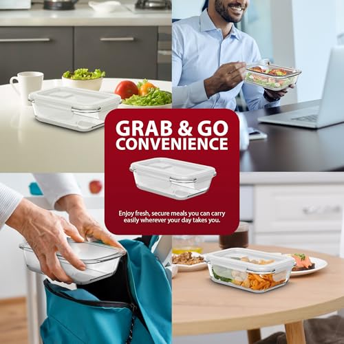 - SECURE, AIRTIGHT SNAP-LOCK LIDS FOR FRESHNESS – Each glass container with lid features a leakproof, BPA-free snap-lock design with silicone seals to preserve taste, texture, and aroma while preventing spills in your bag or fridge.